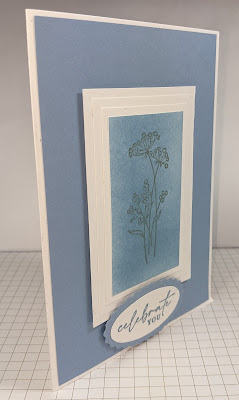 Thursday already! Time is flying again!! So, today is the This and That where you get to decide which card is your preferred one. So as I said on Monday, the set of cards this week are all very simple and today's cards are no expression. I have used 2 of the NEW different In Colours, they are Moody Mauve and Boho Blue. Using a blending brush in each of the 2 colours, I covered a long rectangle with them. Moody Mauve I made a frame to make the rectangle and brushed the colour within the rectangle itself and the Boho Blue, I chose a piece of card to give a smaller rectangle. They were then both stamped in Smoky Slate Ink Pad using 2 different stamps from the Dainty Delight stamp set. Moody Mauve was on a simple white mat then layered onto a Moody Mauve mat. The Boho Blue image I matted and layered several times onto white card then onto a Boho Blue background mat.