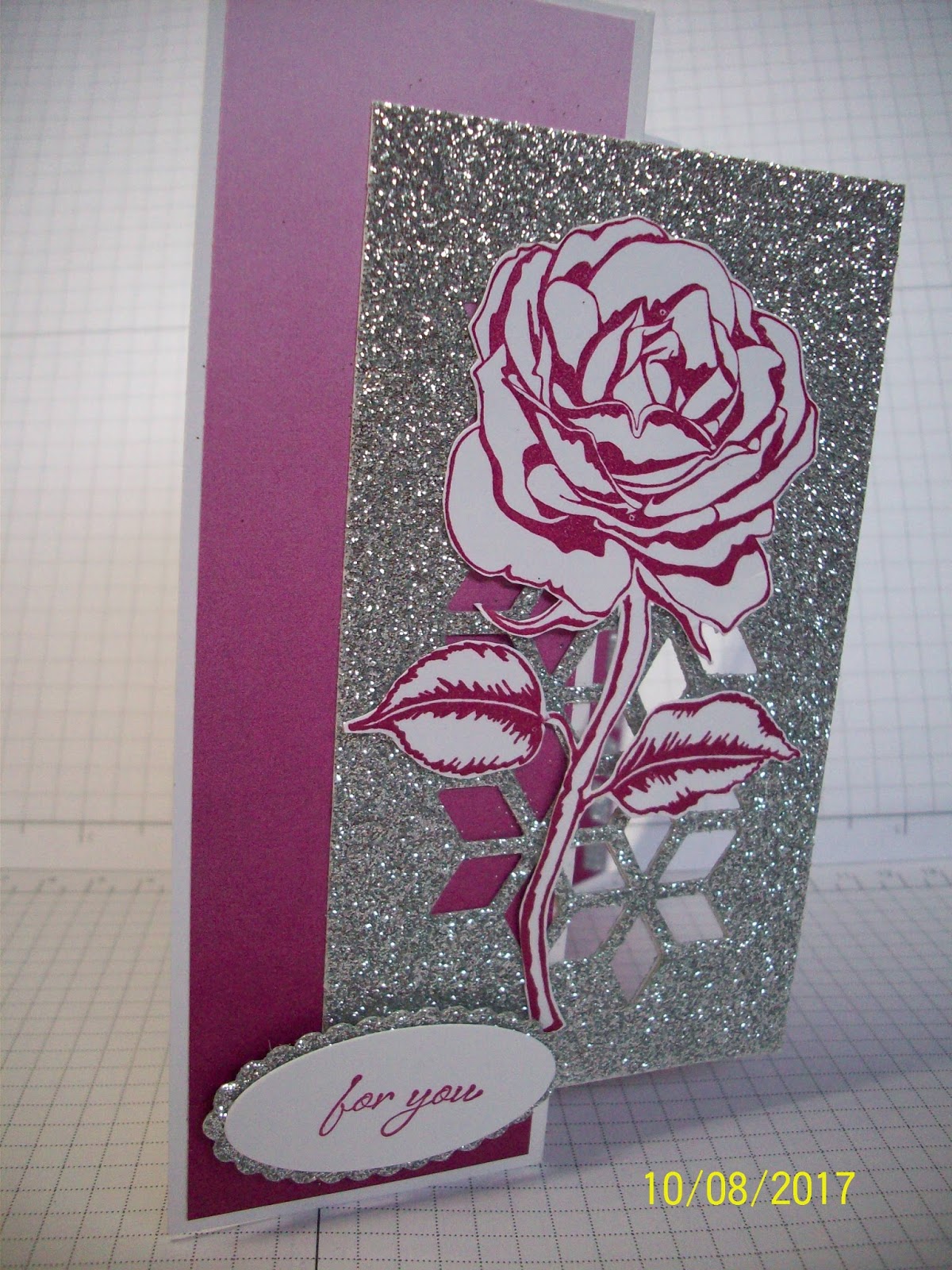A simple Z fold card with the die cut in Silver Glimmer paper highlights the flower this time.