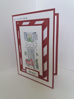 Do you have Christmas pattern paper and stamps that you put away with a heavy heart at the end of the season ? Well today's inspiration is made with both Christmas pattern paper called Be Merry. The sentiment is from a Christmas stamp set from Stampin Up called Hearts Come Home.