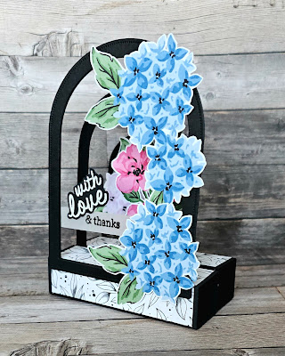 I die cut the bouquet with the blue flowers but unfortunately it had a red bow . So all I did was die cut another bow portion from a scrap of paper that had a blue bow. Then trimmed the bow edge and adhered it on top of the red one!